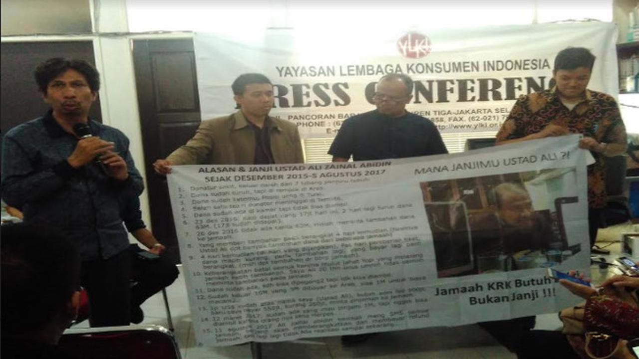 Para calon jemaah KRK tersebut diterima Ketua Pengurus Harian YLKI, Tulus Abadi. Kasus penipuan umrah ini berawal dari kegagalan para calon jemaah berangkat ke Tanah Suci pada Desember 2015. Selanjutnya sekitar 396 calon jemaah melapor ke pihak kepolisian pada 12 April 2016, bahkan hingga saat ini.
