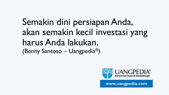 I-Kutipan Semakin dini persiapan Anda, akan semakin kecil investasi yang harus Anda lakukan. (Benny Santoso – Uangpedia®) 4 Dec 2020 15:58 615 0 BAGIKAN Facebook Twitter